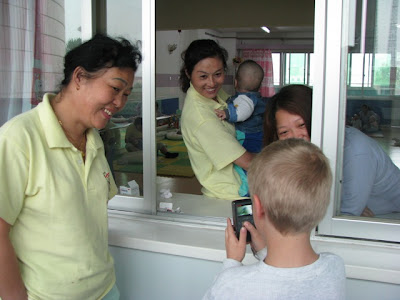 The 2nd family is from Georgia and was adopting a beautiful little girl who is almost 4 years old. The J. family has a son (Jared) that is a year older than John so they quickly became great friends. It was an incredible experience for John to witness the process of how Jared's new sister and baby Emma came into their families as this is similar to how Elizabeth entered our lives. Jared's new sister is Shae and spent the first years of her life at the Starfish home in Xi'an. Both Shae and Emma were immaculate and it looked like they had been dressed in their finest for the 'gotcha' occasion.